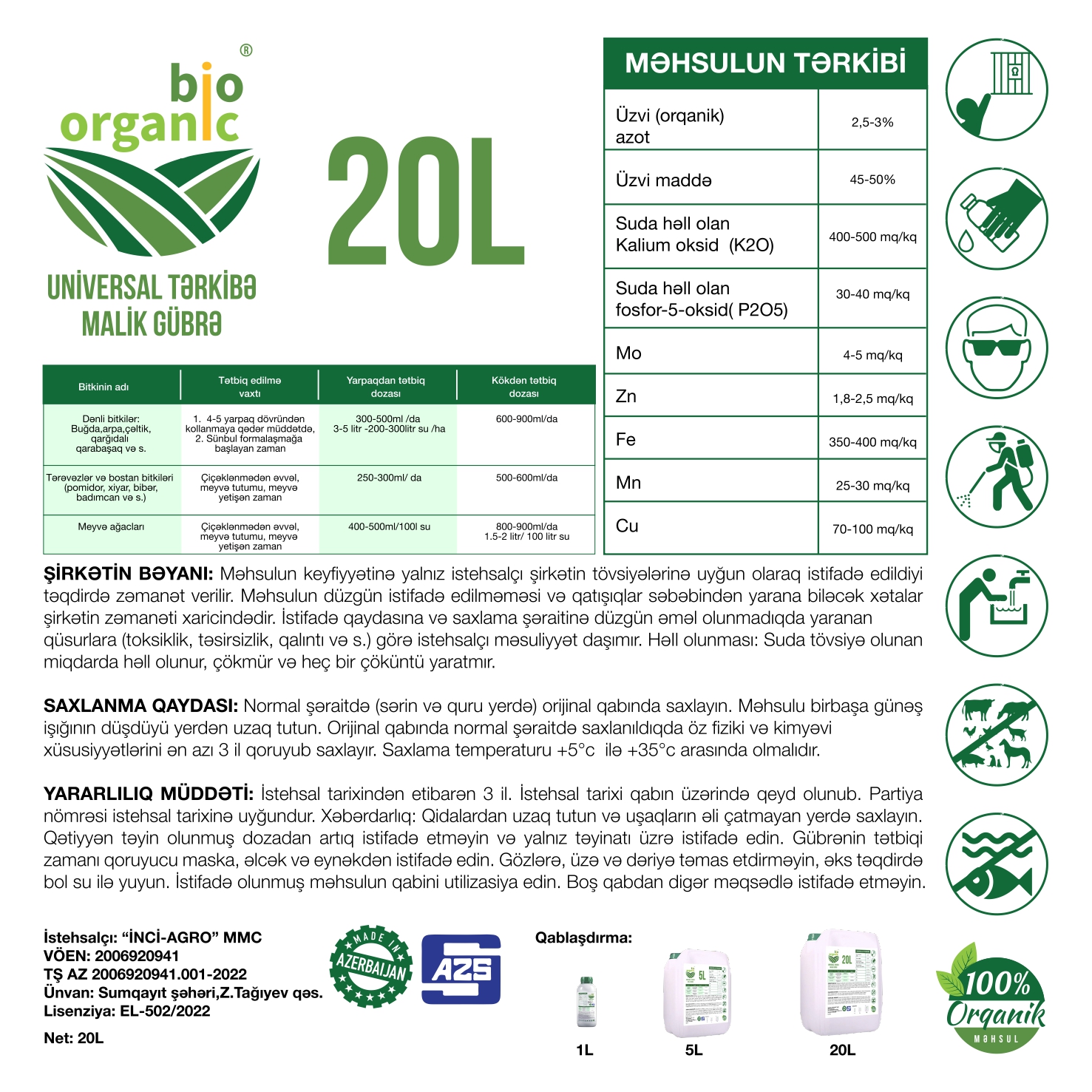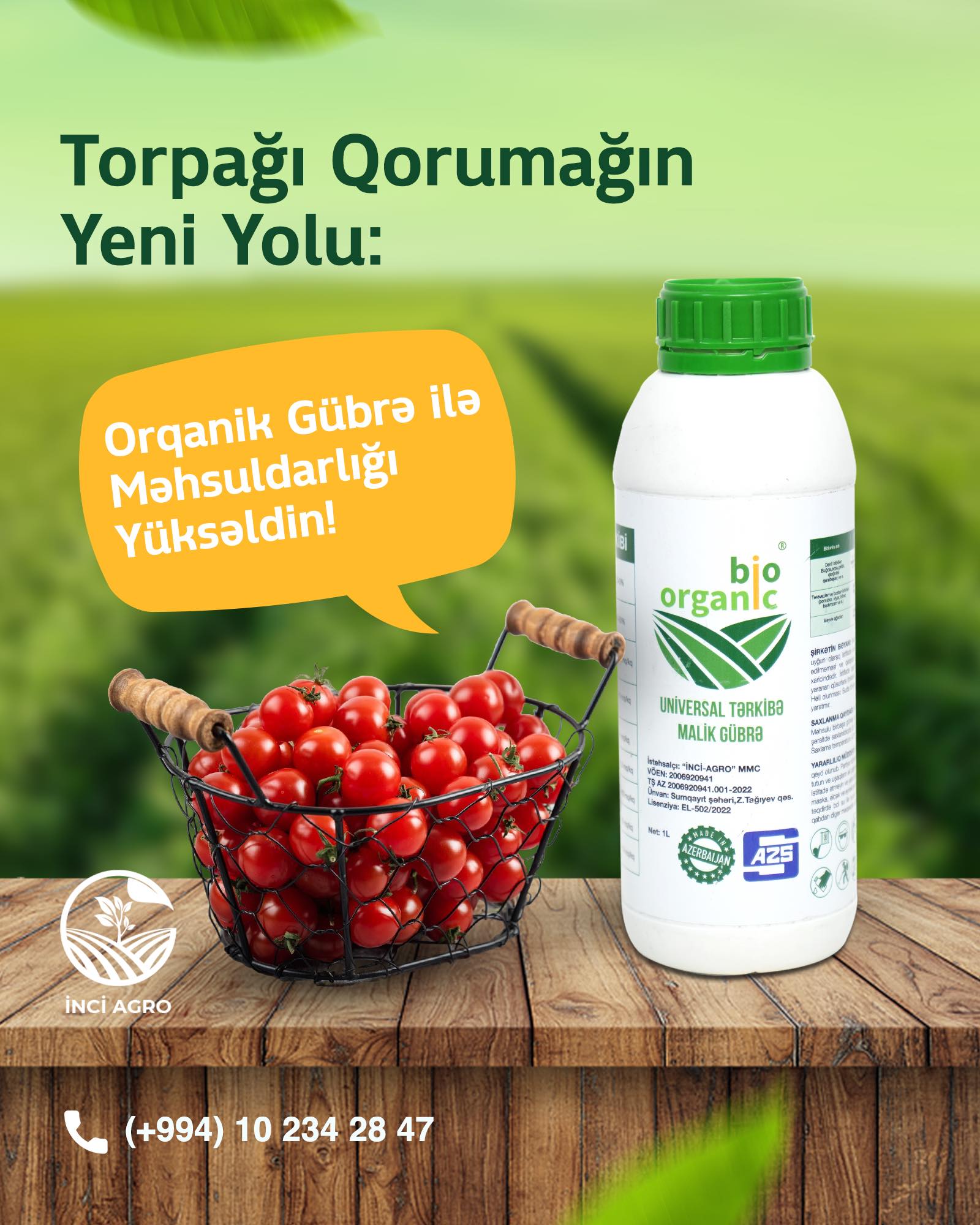 Biorganik Universal – tərkibi tamamilə orqanik olan maye gübrədir. Bütün növ bitkilərin yetişdirilməsində istifadə olunur. Əsasən çiləyicilər vasitəsilə kökdənkənar yemləmə üçün tətbiq edilir. Eyni zamanda müxtəlif damlama suvarma sistemlərində də istifadə oluna bilər.